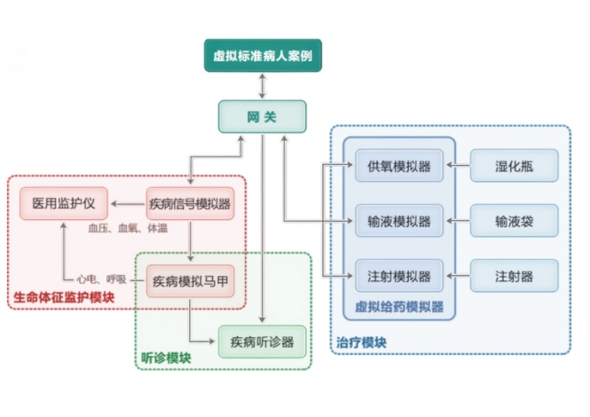 针对传统医学教学中理论实践脱节、实验资源有限等痛点,新建成的实验室引进WDS-300穿戴式疾病模拟系统,通过"穿戴设备+AI+动态数学模型"的创新设计,实现教学突破:一是"虚实联动"设计,将穿戴设备与临床实践无缝对接;二是AI智能助学系统,提供个性化问诊反馈;三是18种典型病例模拟,动态呈现疾病进展;四是低成本高复用特性,大幅提升教学效率。