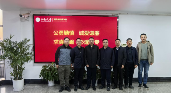 2025年12月25日,湖南省司法厅公共法律服务管理处处长吴兆宏、副处长蒋泞鸿,湖南省司法鉴定协会秘书长章大峰一行三人莅临我院调研。学院党委书记王慷慨、副院长郭亚东、鉴定中心法定代表人(学院原党委书记)李顺长及法医学系主任扎拉嘎白乙拉共同参加了本次交流活动。