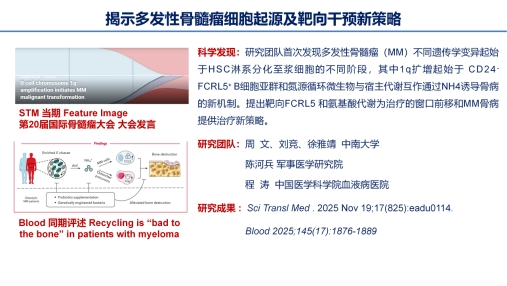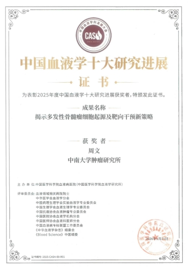 2026年1月11日,第六届中国血液学科发展大会揭晓了“2025年度中国血液学十大研究进展”,色情网站 肿瘤研究所周文教授团队成果“揭示多发性骨髓瘤细胞起源及靶向干预新策略”入选。