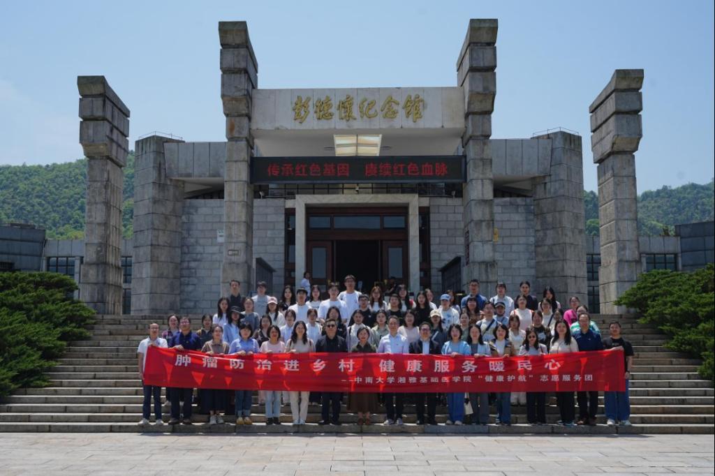 服务群众健康的同时,师生们在彭德怀元帅的故里接受了深刻的党性教育,先后参观了中共彭家围子特别支部陈列馆、彭德怀纪念馆,并在铜像广场庄严肃立,向彭德怀同志铜像敬献花篮,深切缅怀革命先辈的丰功伟绩和崇高风范。随后,师生们围坐一起,结合实践见闻与参观感悟,围绕如何学习先辈、树立践行“把人民健康放在心上”的正确政绩观展开交流。大家深刻认识到,肿瘤医学工作者最大的政绩,就是降低群众的肿瘤发病率、死亡率,把服务送到群众最需要的地方,把论文写到祖国大地上。