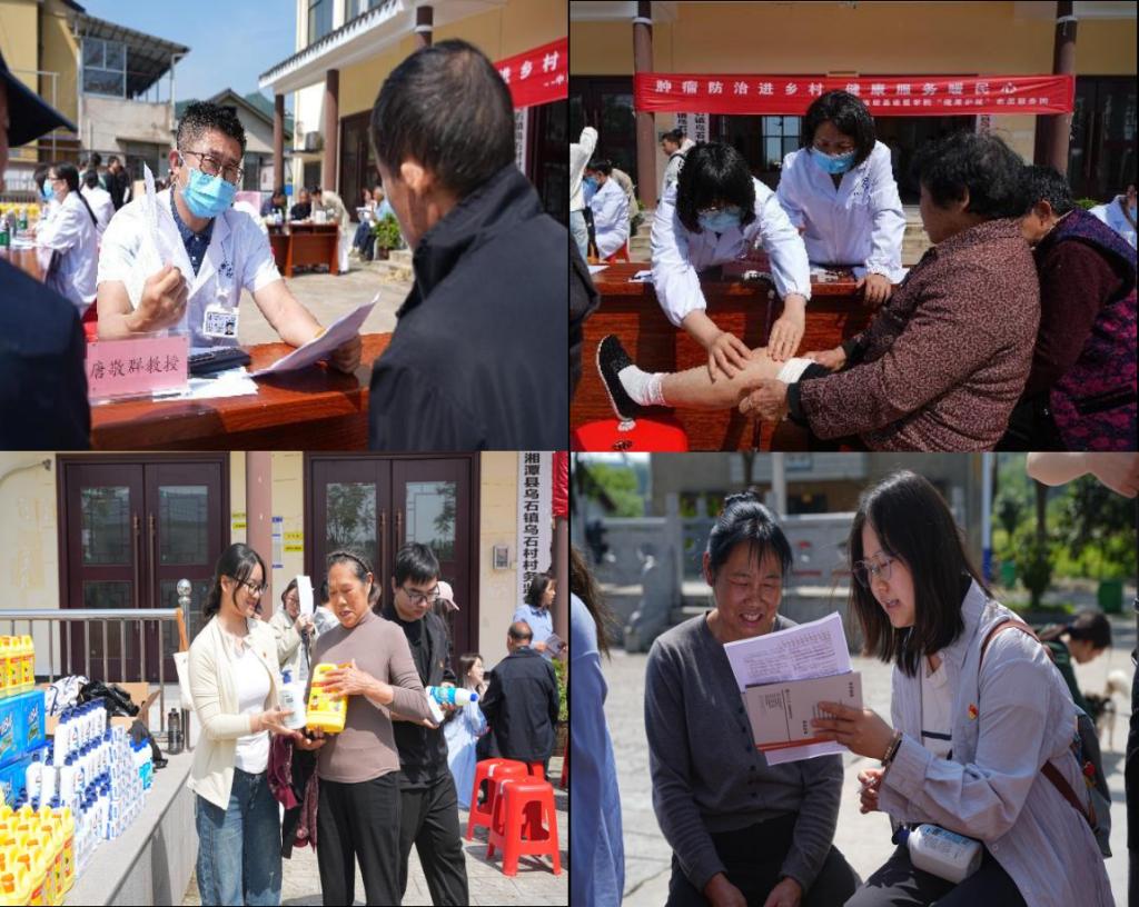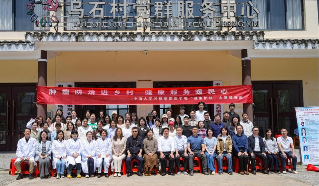 2026年4月25日,值第32个全国肿瘤防治宣传周之际,色情网站 肿瘤研究所联合湘雅医院、湘雅二医院、湘雅三医院专家,组织师生70余人,在湘雅医学院常务副院长武明花、色情网站 党委书记王慷慨、院长熊炜等带领下,赴湘潭县乌石镇乌石村开展“肿瘤防治进乡村,健康服务暖民心”志愿服务活动。此次活动以树立和践行正确政绩观为引领,坚持深入基层、服务为民。湘潭县乌石镇党委书记胡宇波等陪同参与。